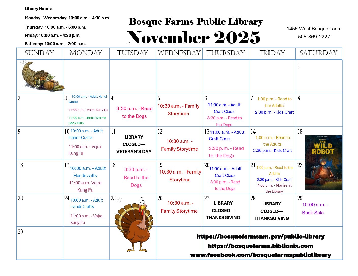 If you would like to join Friends of the Bosque Farms Public Library, Please call 505-869-2227
